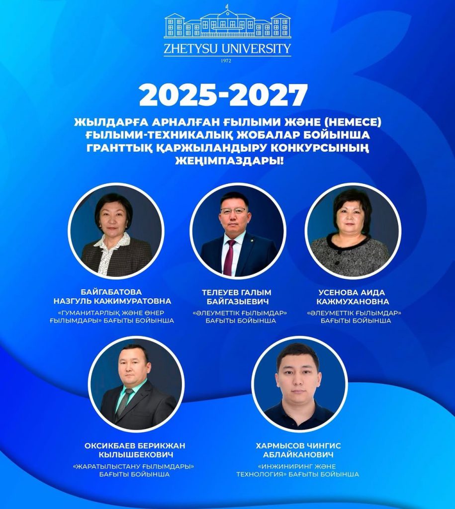 ҚР ҒжЖБМ ҒК 2025–2027 жылдарға арналған ғылыми және ғылыми-техникалық жобаларды гранттық қаржыландыру конкурсының қорытындысы бойынша тарих ғылымдарының кандидаты, қауымдастырылған профессор Байғабатова Назгүл Қажымұратқызының жобасы Ұлттық ғылыми кеңес тарапынан қаржыландыруға мақұлданды. Жоба тақырыбы: AP26197965 «Посткеңестік Қазақстандағы этникалық репатрианттардың күнделікті өмірі: бейімделу стратегиялары мен интеграциялық тәжірибелері (Жетісу облысының мысалында)».