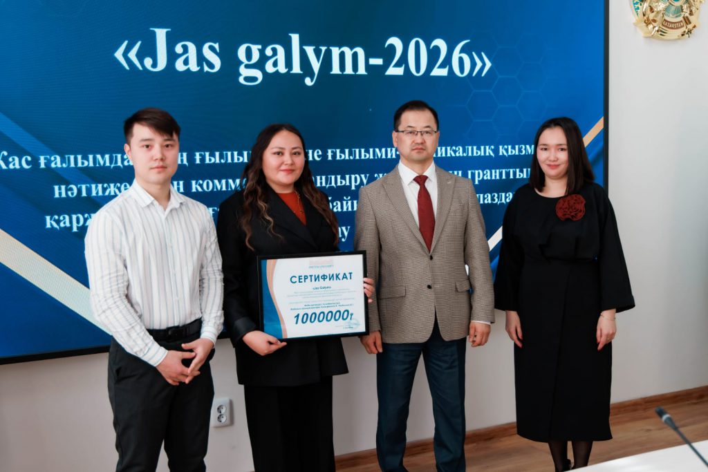 Гуманитарлық ғылымдар жоғары мектебінің оқытушылары Тумабаева Мадина Болатовна, Совет Ерханат, Рысдаулетова Ботагоз Тынысбековна «Jas ǵalym» ғылыми және ғылыми-техникалық қызметінің нәтижелерін коммерцияландыру жобаларын гранттық қаржыландыруға арналған конкурс жеңімпаздары атанды. Жоба тақырыбы: «ХХІ ғасырдың құдіретті студенті тұлғасын қалыптастыратын 10 қадам», жоба жетекшісі Тумабаева Мадина Болатовна, қаржыландыру сомасы: 1 000 000 теңге.