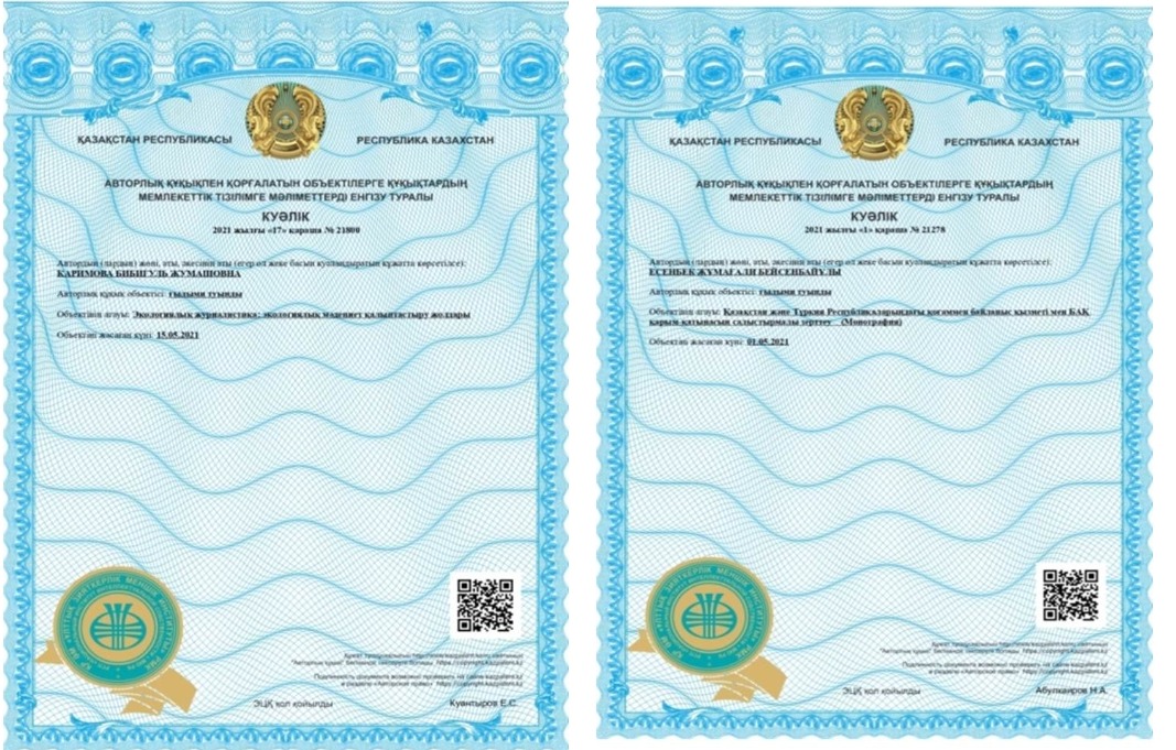 теория и практика журналистики, медиаграмотность, конвергентная журналистика (Ж.Б. Есенбек, Б.Ж. Каримова, И. Албатыр). Авторские свидетельства преподавателей образовательных программ: