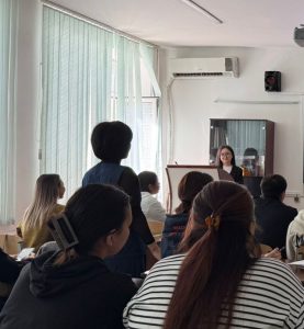 26 ноября 2021 года Каримова Бибигуль Жумашовна провела кураторский час на тему «Коррупция и общество» для студентов специальностей «Журналистика» Ж-311 и Ж-312. Цель: Разъяснить понятие «коррупция», сформировать понимание обстоятельств, при которых она происходит, и научить людей воздерживаться от вредных привычек; Они учатся выражать свои взгляды, свободно излагать мысли и работать творчески. Ответственное отношение к своей стране и воспитание в духе справедливости, содействие национальному образованию.