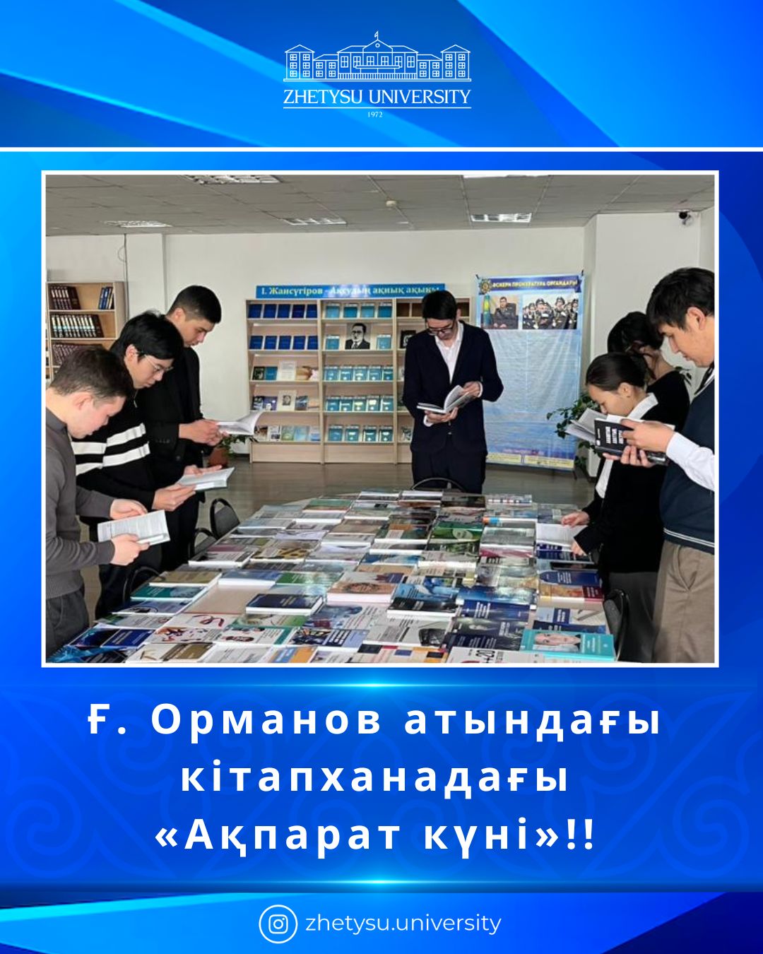 Ғ. Орманов атындағы кітапханадағы «Ақпарат күні»! Ғ. Орманов атындағы кітапханадағы «Ақпарат күні»! Құттықтаймыз! Құттықтаймыз! Құттықтаймыз! Құттықтаймыз! ҚҰТТЫҚТАЙМЫЗ! ҚҰТТЫҚТАЙМЫЗ! «Осы жұрт Ілиясты біле ме екен?» хакатоны «Осы жұрт Ілиясты біле ме екен?» хакатоны «Өзгермелі парадигмалар тұсындағы құндылықтар: ХХІ ғасырдағы тұлға, қоғам және өркениет бағдары» халықаралық ғылыми-тәжірибелік конференция «Өзгермелі парадигмалар тұсындағы құндылықтар: ХХІ ғасырдағы тұлға, қоғам және өркениет бағдары» халықаралық ғылыми-тәжірибелік конференция ҚЫТАЙ КӨКТЕМІ ҚЫТАЙ КӨКТЕМІ Постдокторанттардың халықаралық іссапары Постдокторанттардың халықаралық іссапары Хабарлама Хабарлама