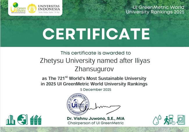 Жетысуский университет им. И.Жансугурова занял 721-е место в мире по рейтингу устойчивого развития UI GreenMetric World University Rankings 2025, 7-е место среди 30 вузов Казахстана.