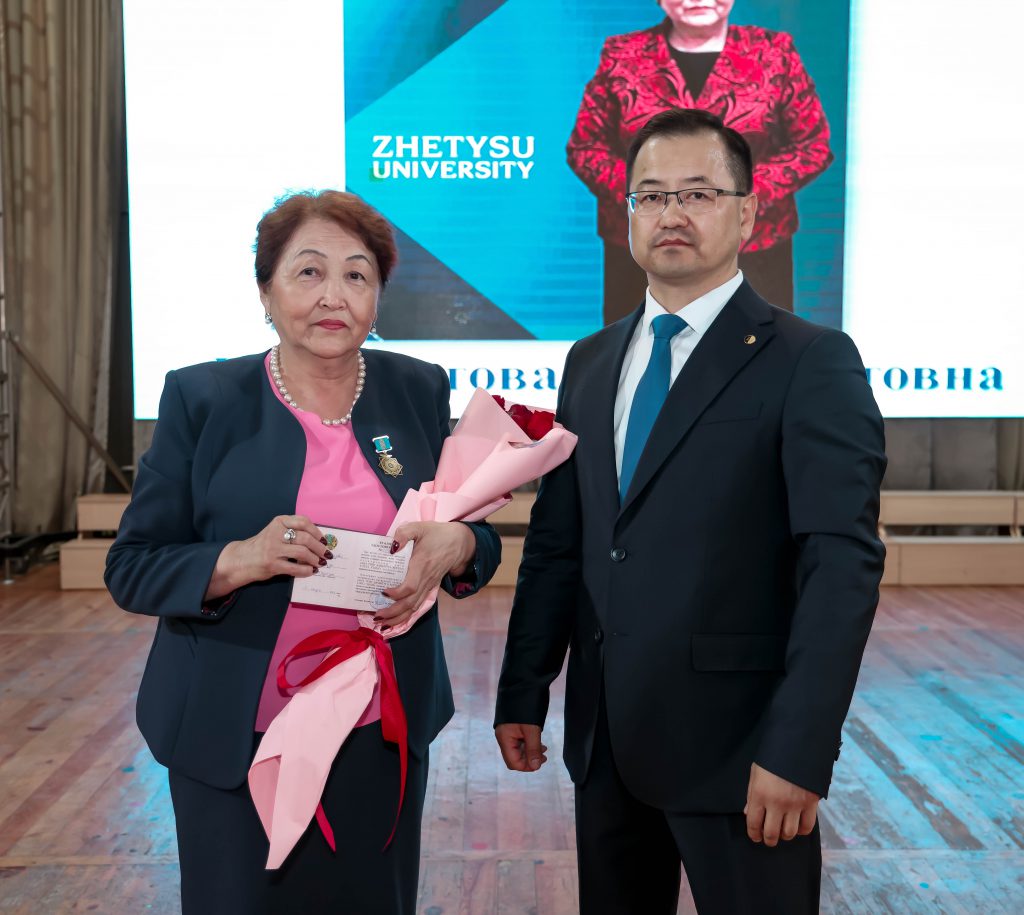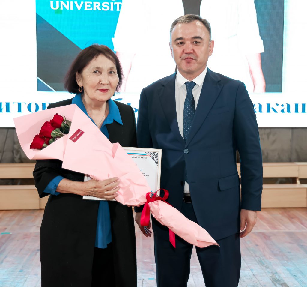In recognition of their tireless work in science and their contributions to the development of society, the Chairman of the Board – Rector Yermek Buribayev, Director of the Institute of Biotechnology and Ecology Kuat Baymyrzayev, Doctor of Economics, Professor Daniyar Kaldiyarov, Doctor of Pedagogical Sciences, Professors Sabyrkul Seitova and Khapiza Naubayeva were awarded Letters of Appreciation from the Akimat of Zhetysu Region.