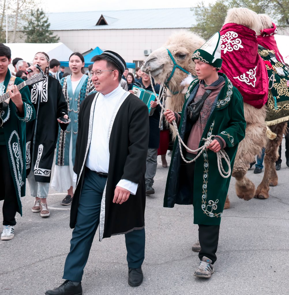 1000 адам ұлттық киіммен келді. Жетісу университетінде наурыз тойланды.