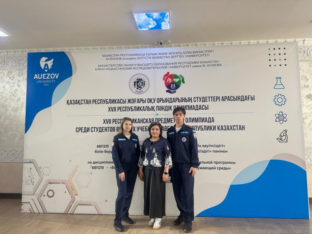 From April 24 to 25, 2025, the XVII Republican Student Subject Olympiad was held at the South Kazakhstan Research University named after M. Auezov in Shymkent, based on the educational program “6B11201 – Environmental Protection and Life Safety.” Students from the Department of Ecology and Agricultural Sciences of the Faculty of Natural and Technical Sciences at Zhetysu University, Snezana Bannova and Ruslan Repishev – 311 groups, won the 2nd place.