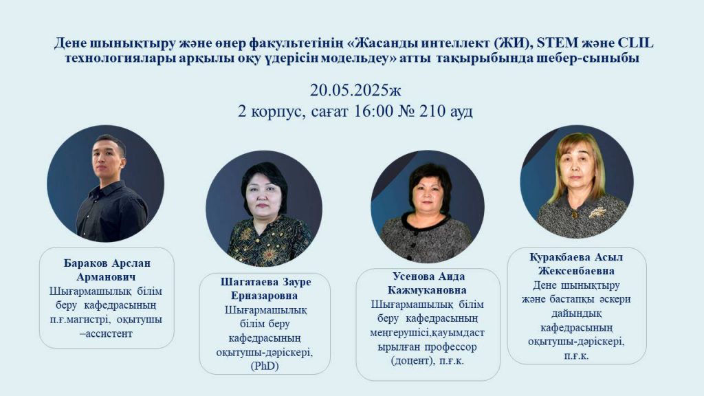 Master class of the Faculty of Physical Culture and art on the topic “modeling the educational process using artificial intelligence (AI), STEM and CLIL technologies”HIGHER SCHOOL OF PHYSICAL CULTURE AND ART