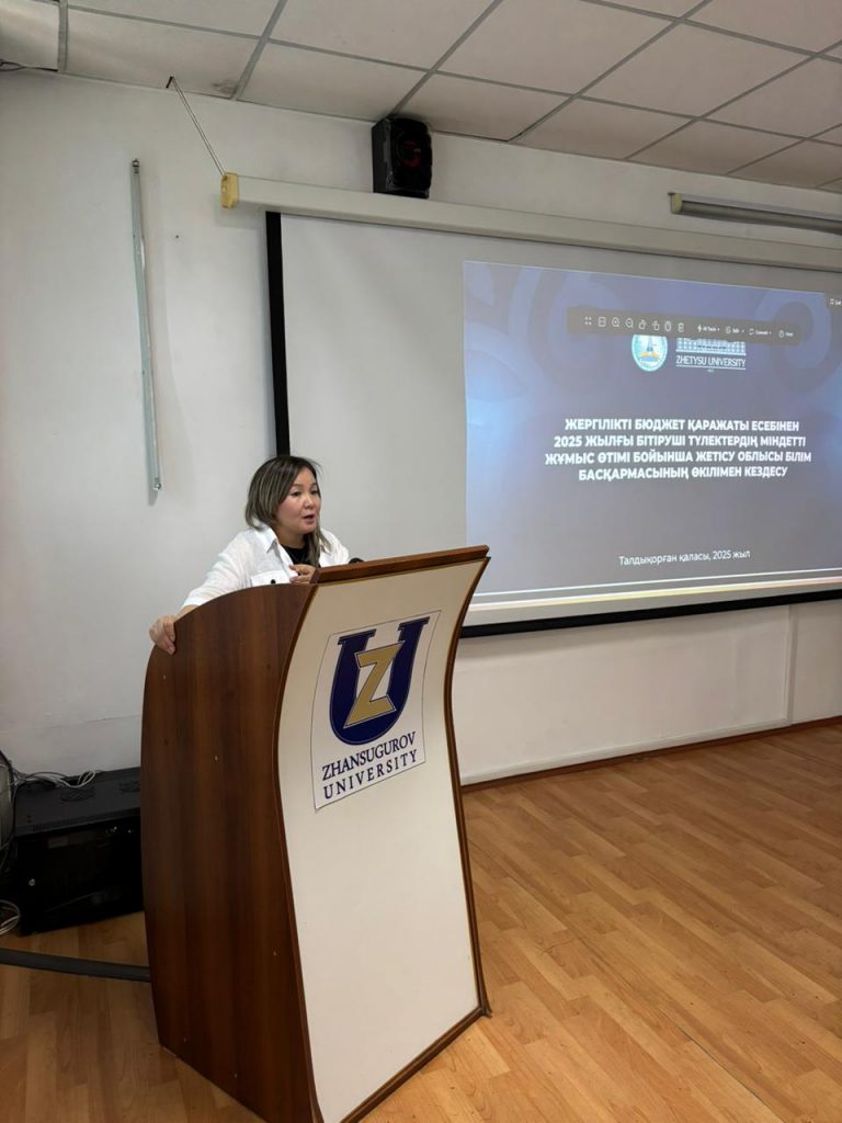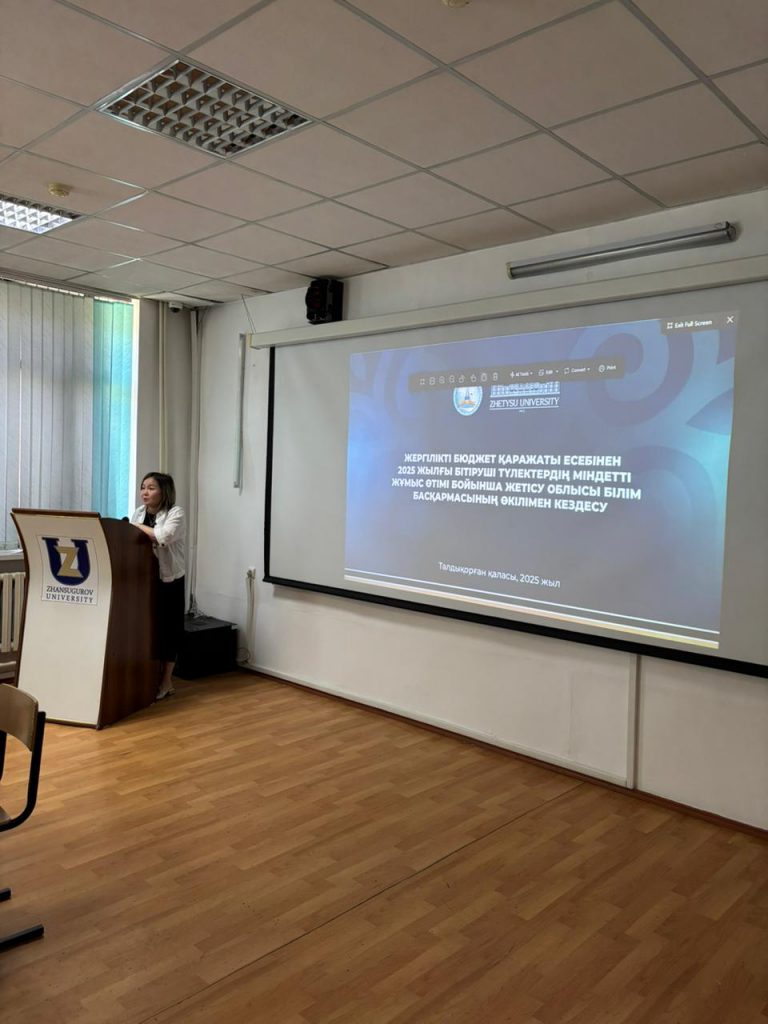 05 маусымда Ілияс Жансүгіров атындағы Жетісу университетінің 2024-2025 оқу жылында мемлекеттік білім беру тапсырысы негізінде Бакалавриат түлектеріне «Міндетті үш жылдық жұмыс өтемі» бойынша Жетісу облысының білім басқармасының өкілі С.Саманова ақпараттық-түсіндіру жұмысын жүргізді.