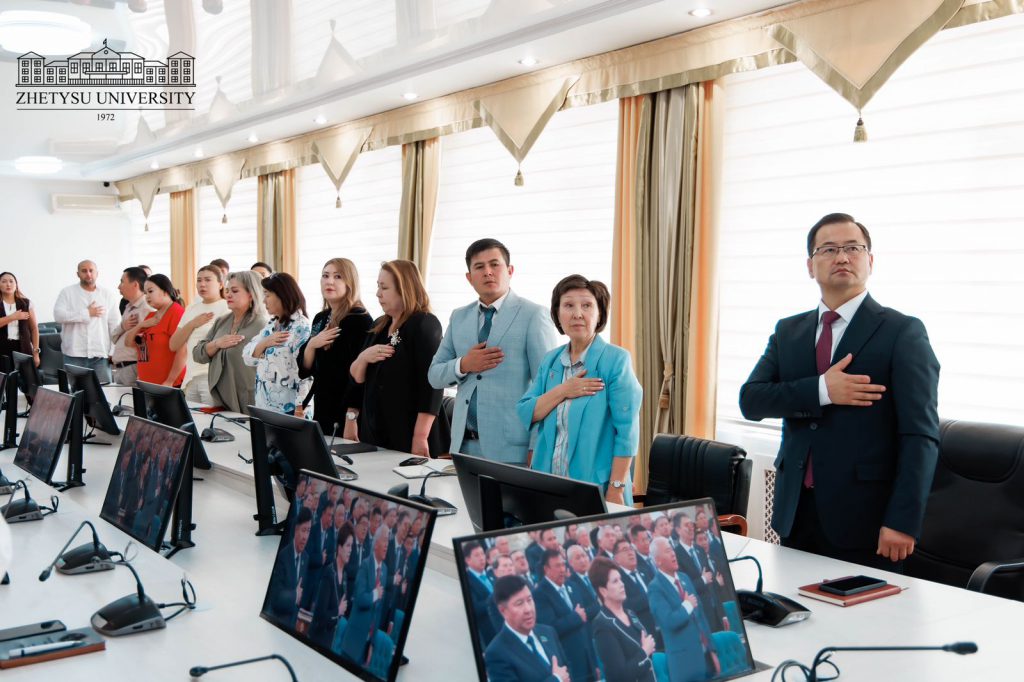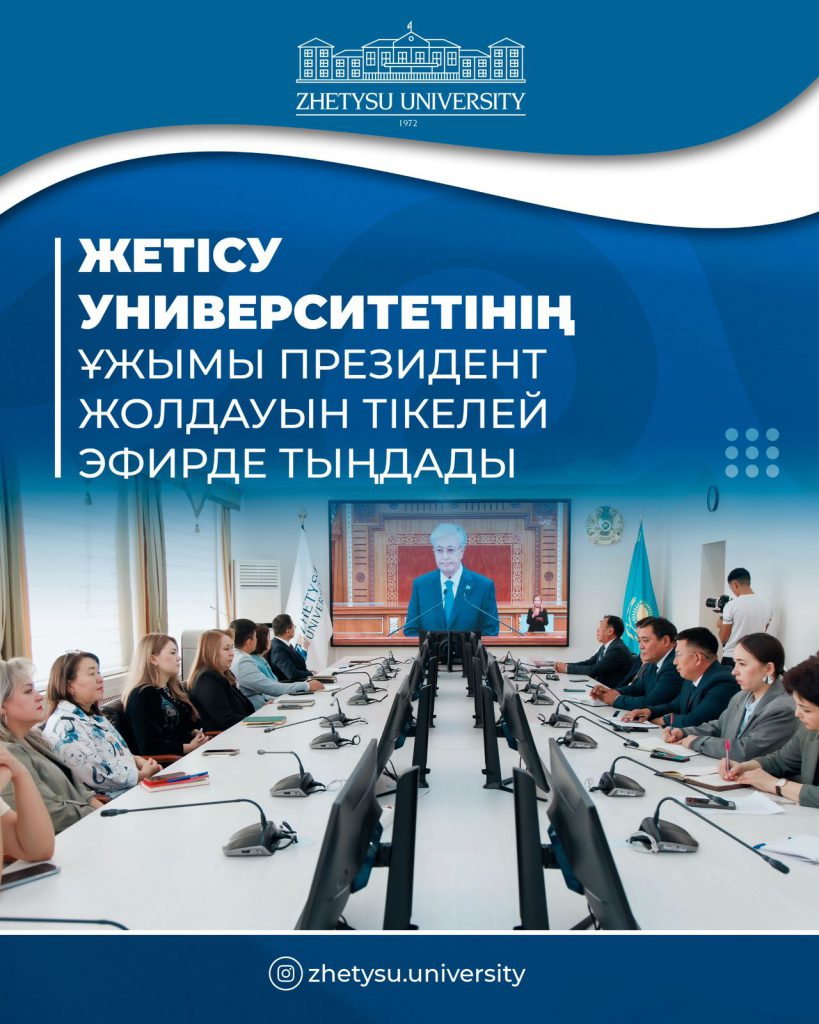 І.Жансүгіров атындағы Жетісу университетінің ұжымы Президент Қасым-Жомарт Тоқаевтың «Жасанды интеллект дәуіріндегі Қазақстан: өзекті мәселелер және оны түбегейлі цифрлық өзгерістер арқылы шешу» атты Қазақстан халқына Жолдауын тыңдады.