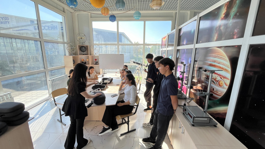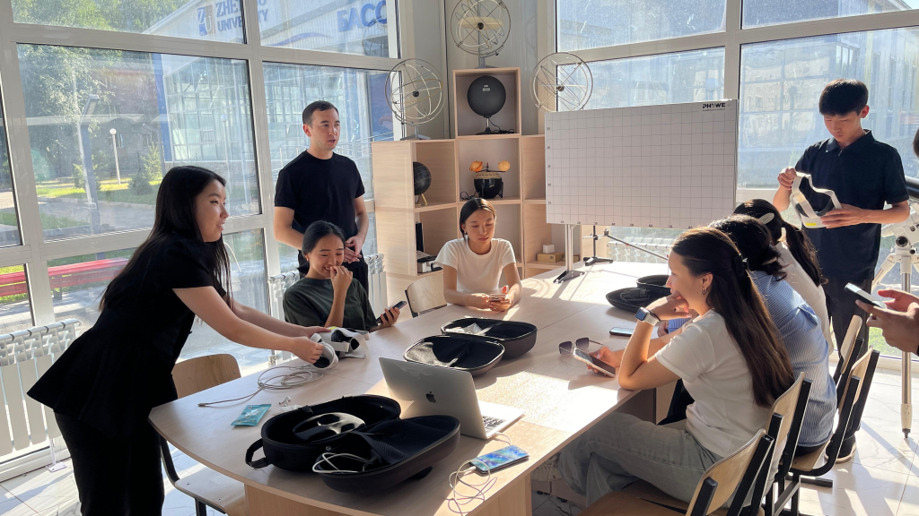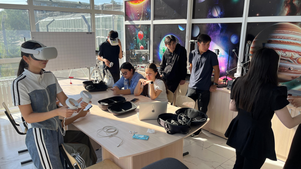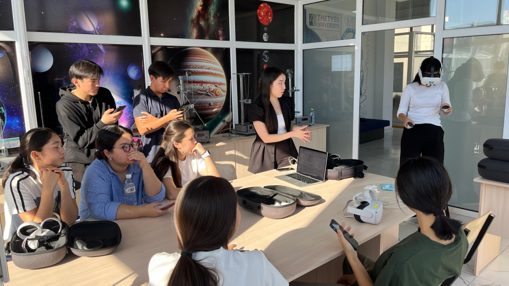On September 12, 2025, employees of the Big Dream lab company held a training seminar for 1st-year students of the 6B01512 Physics (IP) educational program on the use and implementation of augmented and virtual reality technologies. The seminar was attended by students, the curator of the group G.Zhapsarbay and the lecturer A.Abdulayeva for the subsequent implementation of VR, AR in the educational process.
