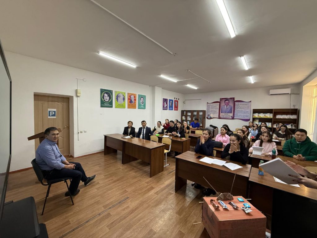 Апталық аясында «Жазушымен сұхбат» тақырыбында «Қазақ тілі мен әдебиеті» білім беру бағдарламасының  4-курс білімгерлері «Алтын қалам», «Алтын тобылғы», «Алтын тұғыр» әдеби сыйлықтарының жеңімпазы, жазушы Е.Айдабосынмен жүздесті. Сұрақ-жауап форматында өткен кездесу барысында Жетісу әдебиеті өкілінен соны ақпарат алған білімгерлер жазушының «Ұлыма» хикаятын талдап, жазушы-оқырман арасындағы қарым-қатынастың үлгісін көрсетті.