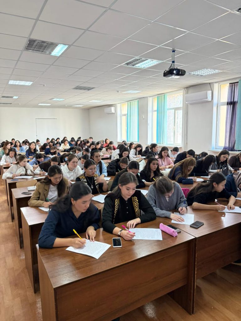 More than 100 students took part in writing the dictation. The text was taken from M. Auezov’s novel-epic The Path of Abai, which gave the event a special symbolic meaning.