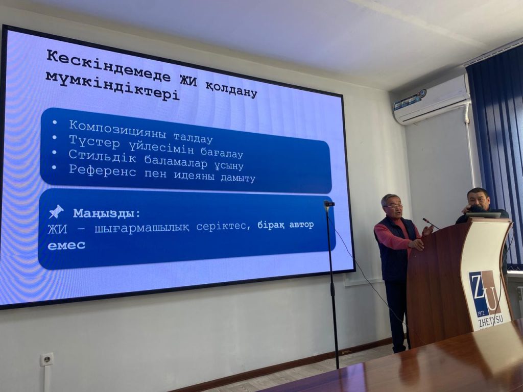 - оқытушы-дәріскер, п.ғ.к., Мырзаканов М.С. және оқытушы-дәріскер Ахметов Б.Б. «Кескіндемені оқыту үдерісінде жасанды интеллектті интеграциялау: педагогикалық перспективалар» тақырыбында баяндама жасады.