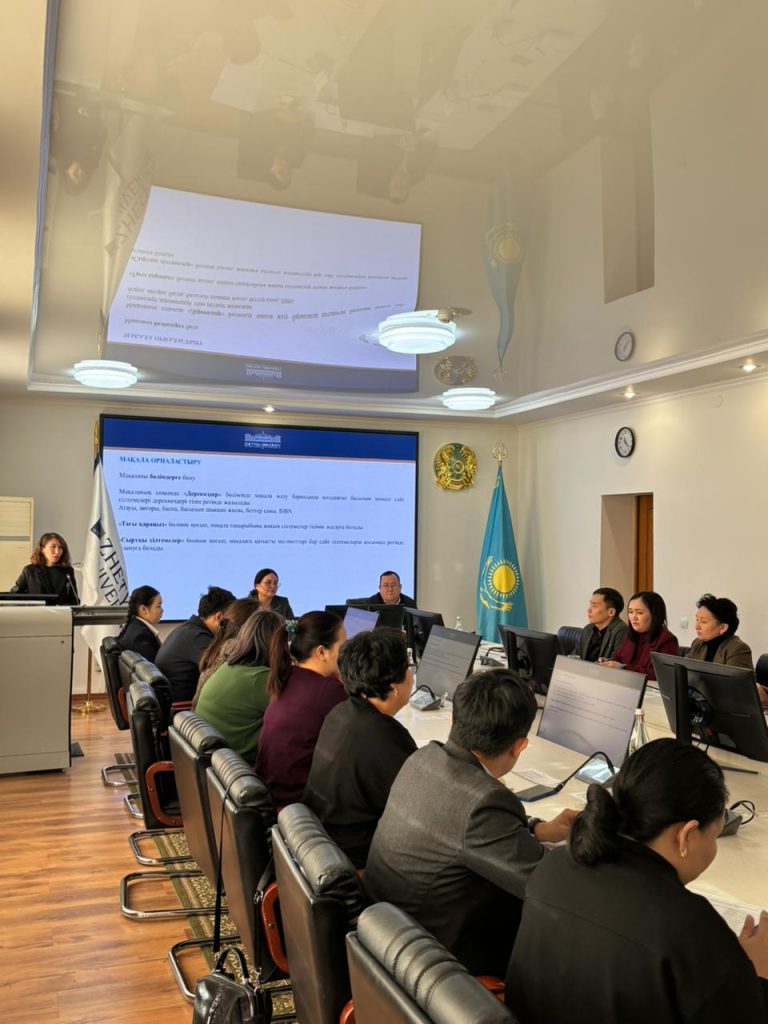 В ходе семинара PhD, преподаватель-лектор Шүкенай Гүлім Төлеуқызы выступила с содержательным докладом, в котором всесторонне проанализировала научно-просветительский потенциал платформы Wikipedia, актуальность формирования культуры работы с открытыми источниками, а также значимость продвижения национального контента в международном информационном пространстве.