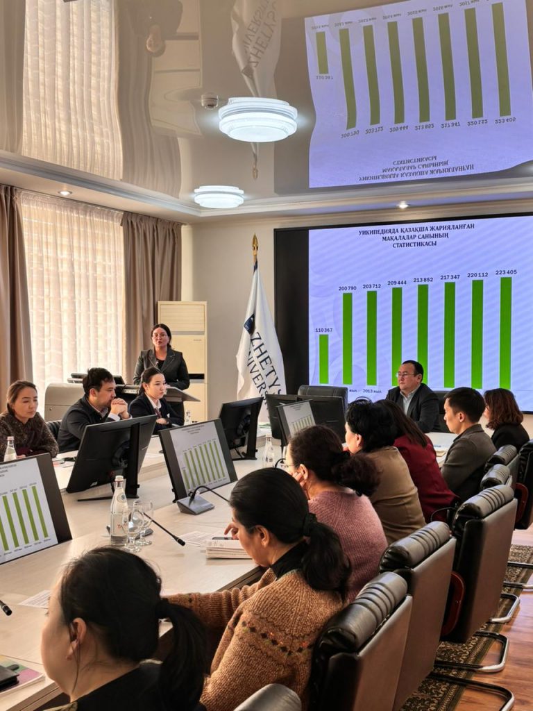 16 января 2026 года в Жетысуском университете имени И. Жансугурова при содействии отдела наукометрии и подготовки научных кадров и Назарбаев Интеллектуальной школы был проведён внутриуниверситетский семинар на тему «Пополнение открытой онлайн-энциклопедии (Wikipedia) материалами на казахском языке».