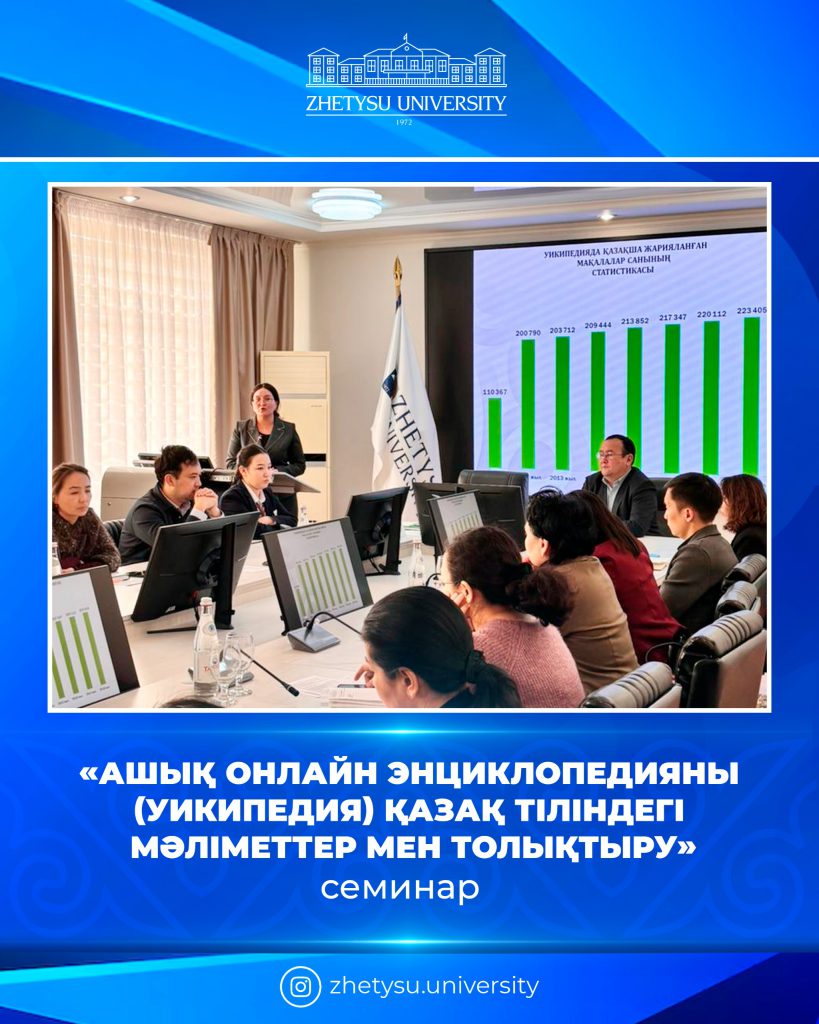 On January 16, 2026, Zhetysu University named after I. Zhansugurov, together with the Department of Scientometrics and Research Personnel Training and the Nazarbayev Intellectual School, held an internal university seminar on «Adding Content in Kazakh to the Open Online Encyclopedia (Wikipedia)».