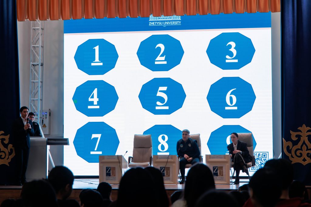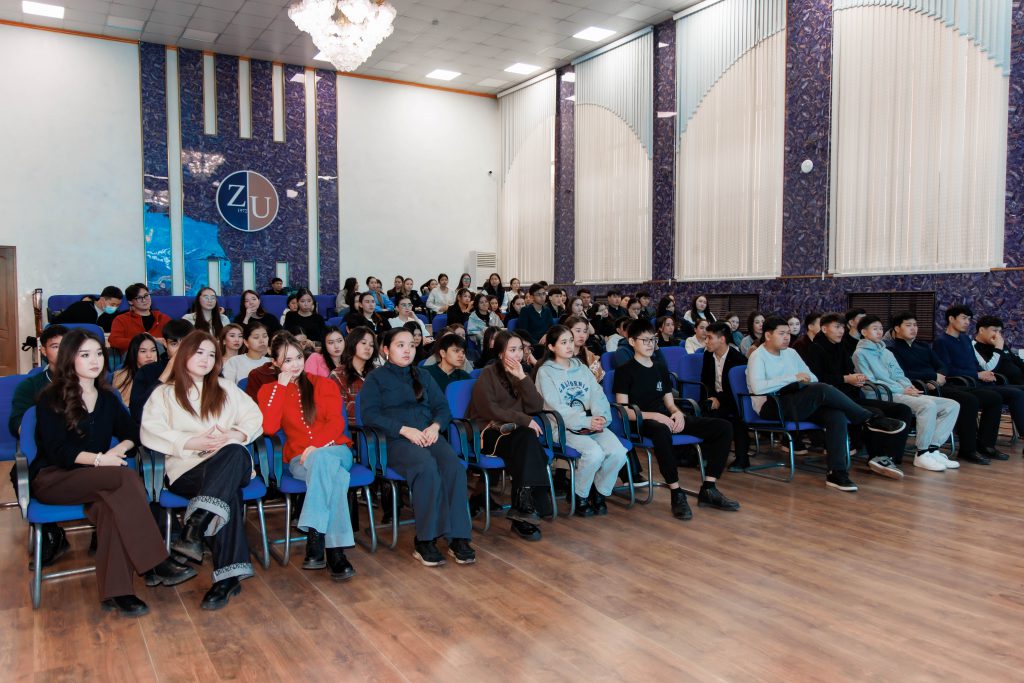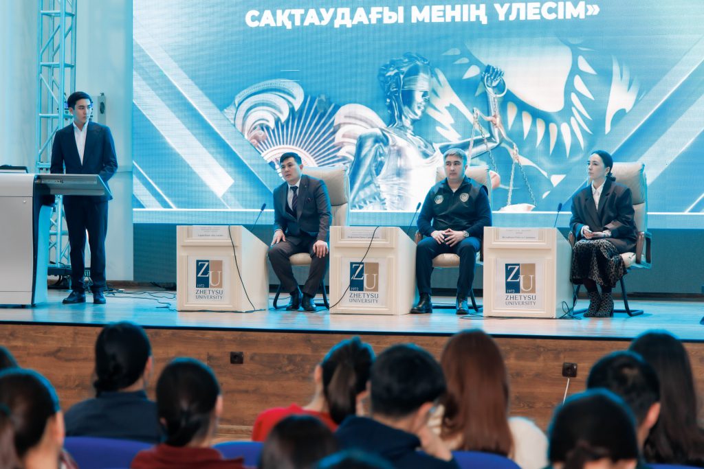 A meeting titled “My Contribution to Upholding Law and Order” was held with students of the Faculty of Humanities at Zhetysu University named after Ilyas Zhansugurov within the framework of the Head of State’s “Law and Order” principle. The purpose of the meeting was to provide guidance in shaping young people’s personal civic stance on combating offenses and maintaining public order.