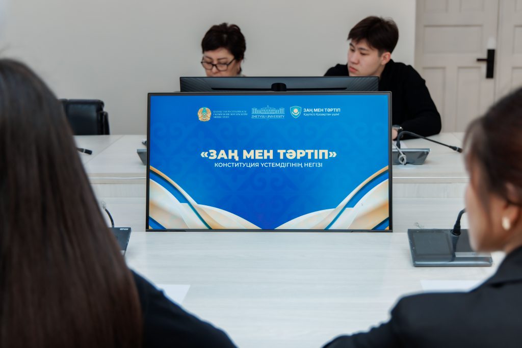 A meeting titled “Law and Order – the Foundation of Constitutional Supremacy” was held at the Zhetysu University named after Ilyas Zhansugurov with the aim of promoting the ideology of “Law and Order.” The event was attended by the Deputy Chairperson of the Committee for Higher and Postgraduate Education of the Ministry of Science and Higher Education of the Republic of Kazakhstan, Akerke Ablaikhan, heads of law enforcement agencies of Taldykorgan, as well as the university’s faculty members and students.