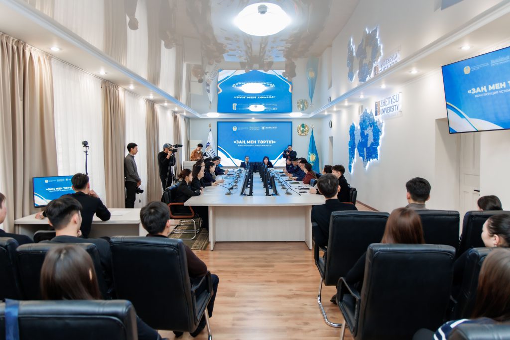 Special guest of the meeting, Deputy Chairperson of the Committee for Higher and Postgraduate Education of the Ministry of Science and Higher Education of the Republic of Kazakhstan, Akerke Ablaikhan, also exchanged views with students and emphasized the particular importance of the new Constitution for the future of young people.