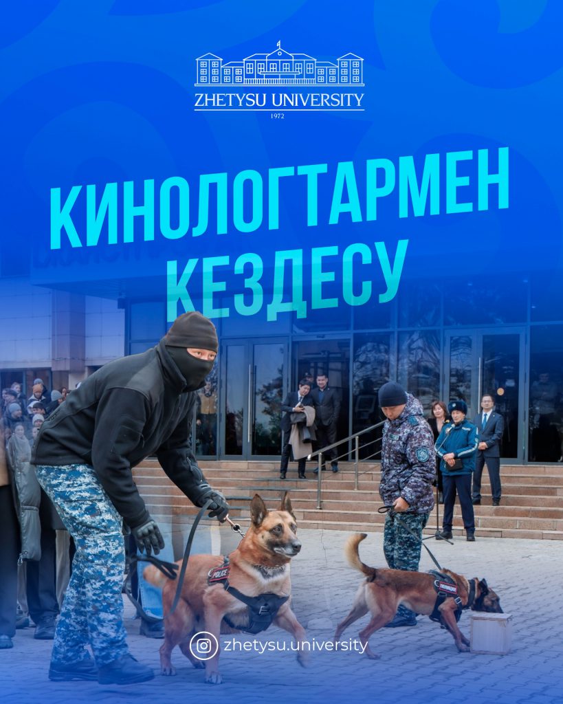 Жетісу университетінде «Заң мен тәртіп» қағидаты аясында кездесу ұйымдастырылды. Іс-шараға Қазақстан Республикасы Ғылым және жоғары білім министрлігі Жоғары және жоғары оқу орнынан кейінгі білім комитеті төрағасының орынбасары Акерке Абылайхан, Жетісу облыстық Полиция Департаменті есірткі қылмысына қарсы іс-қимыл басқармасының жедел уәкілі, полиция капитаны Мадина Абдушева, Кинология қызмет орталығының аға инспекторы-кинологы, полиция капитаны Мақсат Маметжанов, инспектор-кинолог, полиция кіші лейтенанты Айдос Ерузаков және полиция аға сержанты, кіші инспектор-кинолог Мейрамбай Толеубеков қатысты.