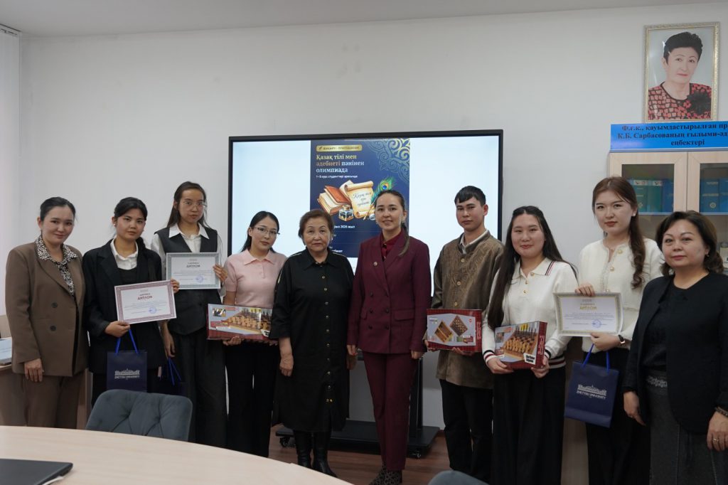 2026 жылдың 16 наурызында қазақ тілі мен әдебиеті пәндері бойынша олимпиада өтті. Бірінші кезеңде 1-3 курс студенттері арасынан іріктелген 16 қатысушы лексика-грамматикалық тест тапсырды. Ақтық сынға жолдама алған 6 студент әдеби шығармаларға талдау жасап, шығармашылық қабілеттерін көрсетті. Әділ-қазылар құрамында ф. ғ. к., профессор м. а. М.Т. Джакыпбекова, ф. ғ. к., қауымдастырылған профессор А.С. Шыныбекова және магистр, оқытушы-дәріскер Есимбекова Д.Б. төрелік етті. Олимпиада қорытындысы бойынша 3-орынды ҚТӘ 311 тобының студенті Құмарбек Еркежан, 2-орынды ҚТӘ 311 тобының студенті Тастыбай Аяулым және 1-орынды ҚТӘ 211 тобының студенті Қамбар Гүлмира иеленді. Факультет деканы, философия докторы (PhD) Р.С.Желдибаева олимпиаданы қорытындылап, қатысушыларға дипломдар мен сыйлықтар табыстады. Пән олимпиадасы студенттердің білімін жетілдіруге, шығармашылық ізденісін арттыруға және мемлекеттік тіл мен ұлттық әдебиетке деген құрметін нығайтуға зор мүмкіндік берді.