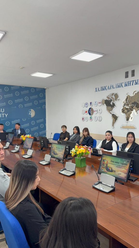 Оқытушы-дәріскер Г.М. Ожарова өз сөзінде құқықтық мәдениет пен академиялық адалдықтың маңызын атап өтті.
