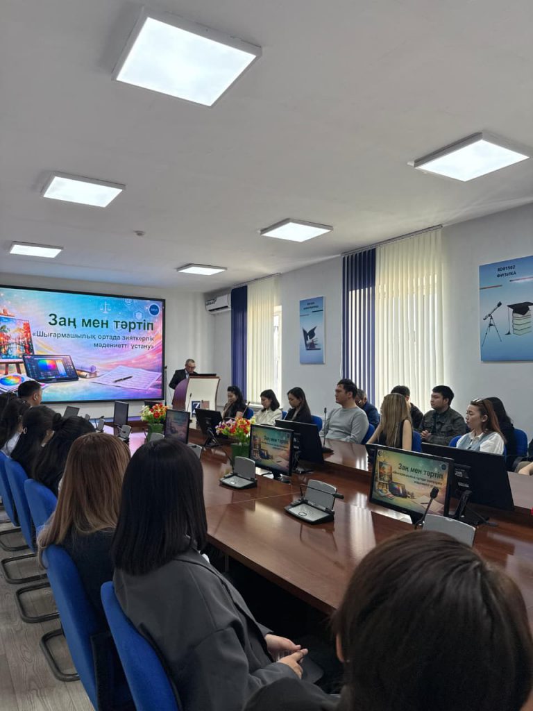 «Заң мен тәртіп» қағидаты аясында І. Жансүгіров атындағы Жетісу университетінің Дене шынықтыру және өнер факультетінде «Шығармашылық ортада зияткерлік мәдениетті ұстану» тақырыбында семинар өтті.