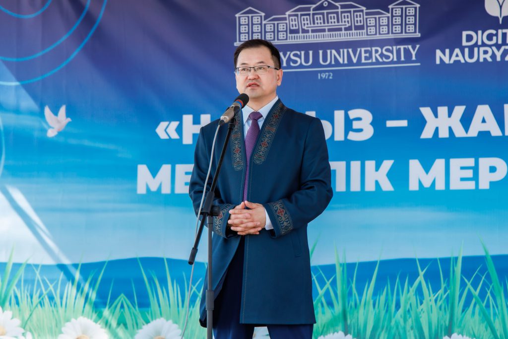 Жиында университеттің Басқарма төрағасы – ректоры Ермек Бөрібаев барша қауымды Ұлыстың ұлы күнімен құттықтап, Наурыз береке мен бірліктің бастауы екенін атап өтті.