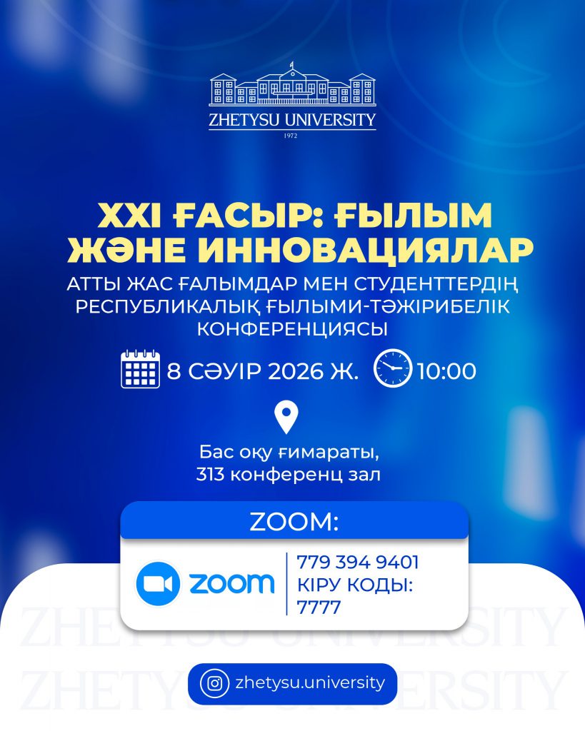 Место проведения: Жетысуский университет им. И. Жансугурова, Главный учебный корпус, конференц зал 313.
