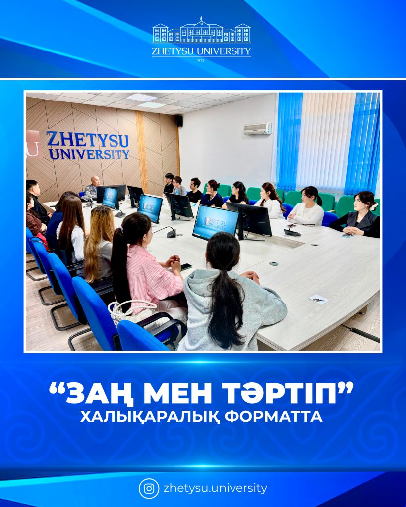 On April 6, 2026, international students of Zhetysu University participated in a regular meeting dedicated to discussing the key principles of the “Law and Order” ideology. The event, held at the university, featured keynote speeches by the Dean of the Faculty of Law and Economics, G. Teleuev, legal expert and Professor B. Moldabekov, and Anti-Corruption Compliance Officer B. Kabykenov.