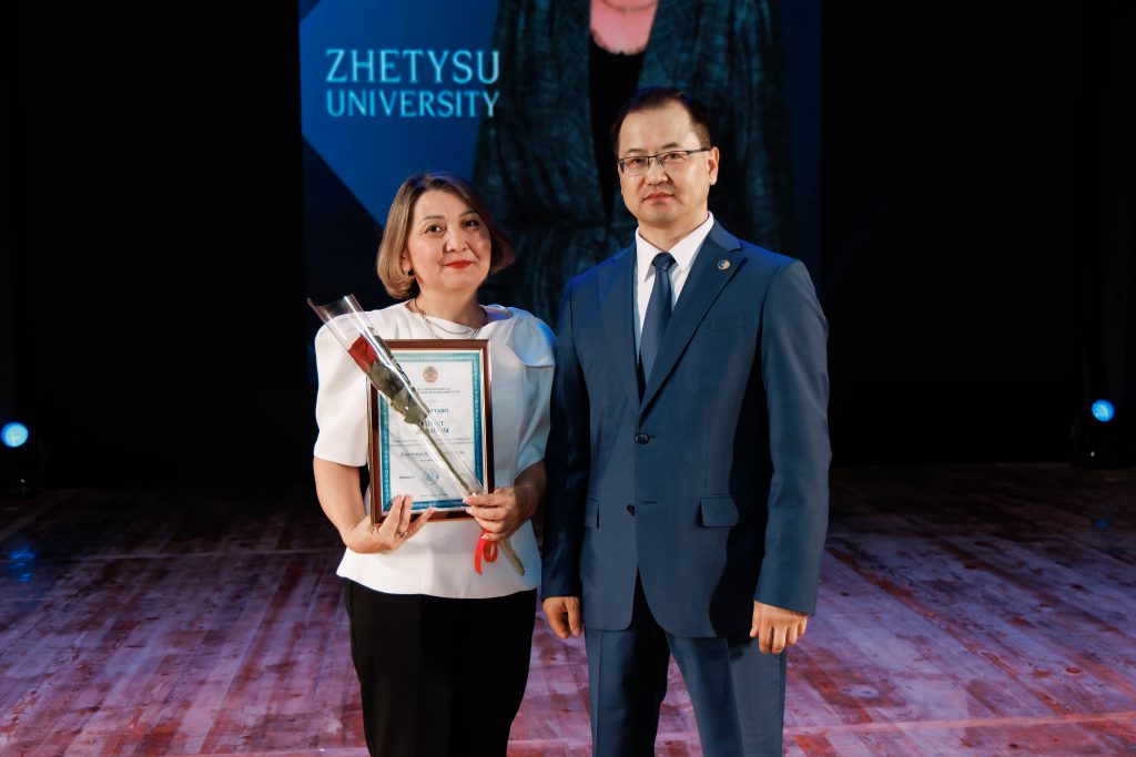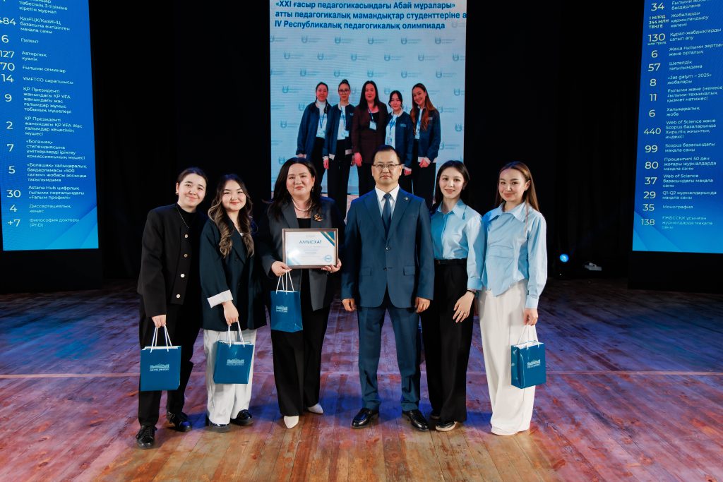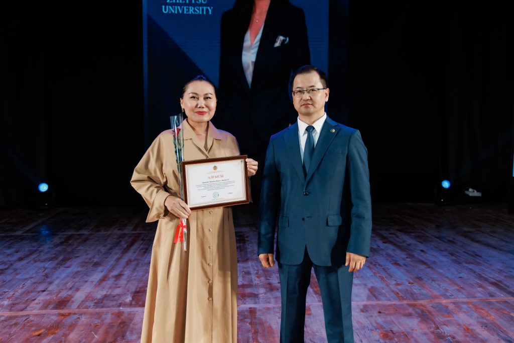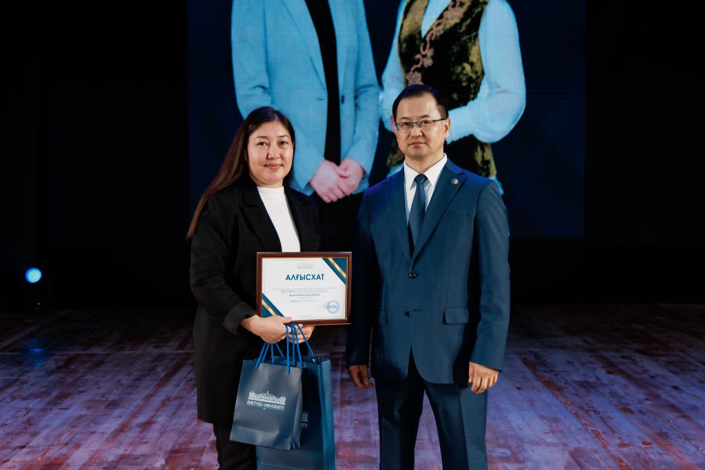 Doctor of Economics, Professor of the Department of Public Administration and Management, Daniyar Kaldiyarov, was awarded the “Akhmet Baitursynuly” badge. Candidate of Philological Sciences, lecturer of the Department of Kazakh Language and Literature, Lazat Chaltikenova, received the badge “For Contribution to the Development of the Native Language.”