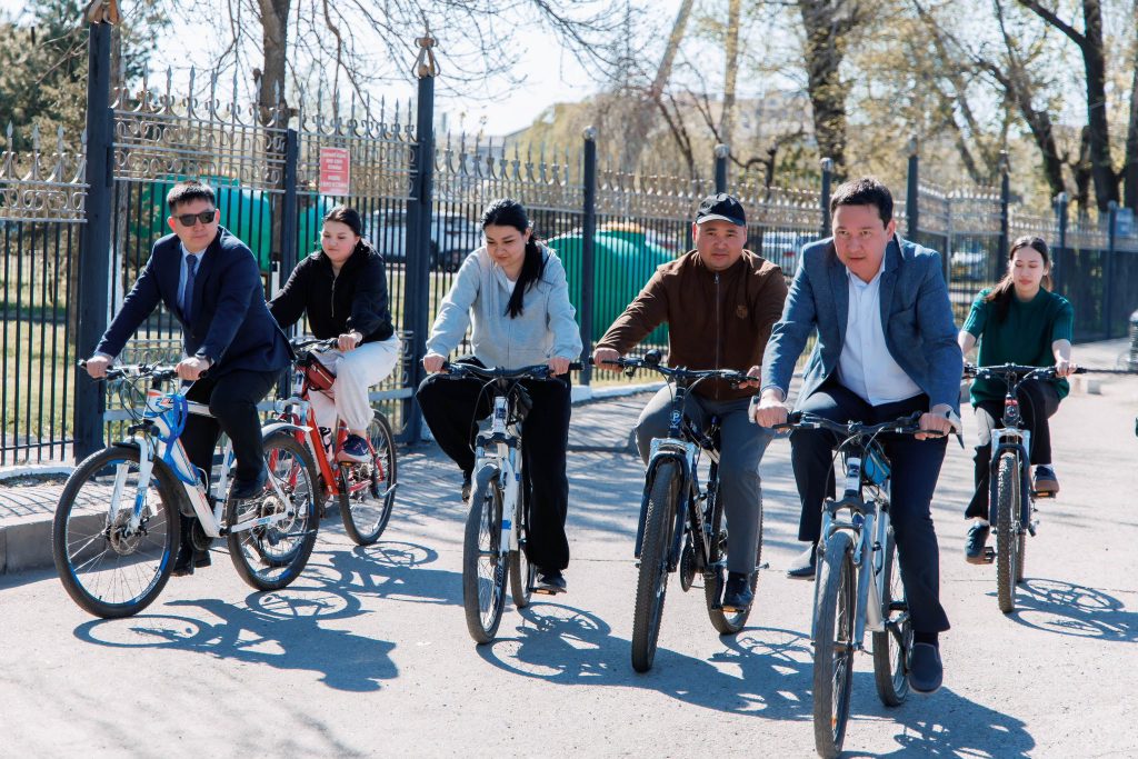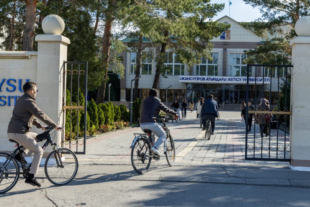 Employees of Zhetysu University named after Ilyas Zhansugurov organized an eco-challenge in support of the national environmental campaign “Clean Kazakhstan.” As part of the initiative, staff members chose to commute to work by bicycle instead of using private cars.
