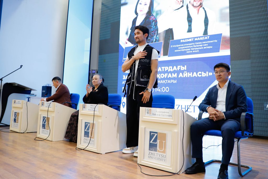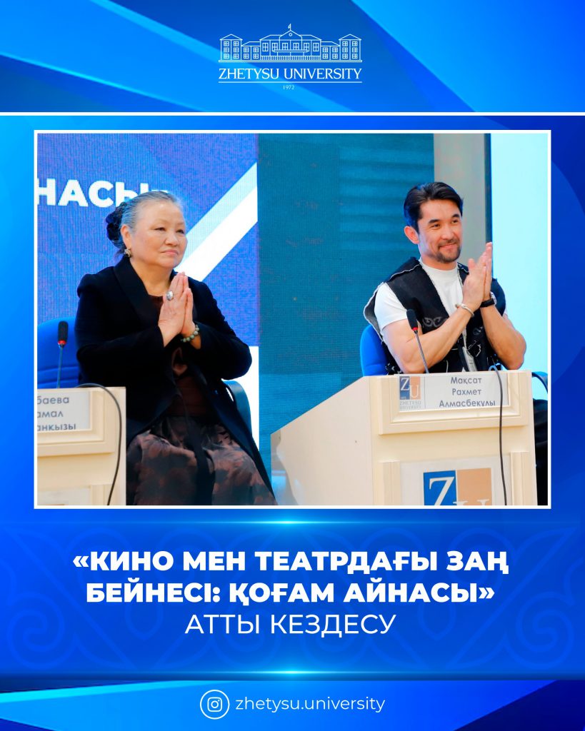 І. Жансүгіров атындағы Жетісу университетінде  Заң мен тәртіп қағидасы аясында «Кино мен театрдағы заң бейнесі: қоғам айнасы» атты мазмұнды кездесу өтті. Танымдық іс-шараға Жетісу облысының мәдениет, архивтер және құжаттама басқармасының басшысы Қуаныш  Сүлейменов, Қазақстанның халық әртісі, Қазақстанның еңбек сіңірген әртісі, Қазақстан Республикасы Мемлекеттік сыйлығының лауреаты Гүлжамал Қазақбаева, сондай-ақ Ғ.Мүсірепов атындағы Қазақ мемлекеттік академиялық балалар мен жасөспірімдер театрының актеры, әнші Мақсат Рахмет  арнайы қонақ ретінде қатысты.