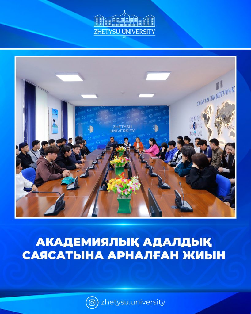 І. Жансүгіров атындағы Жетісу университетінің физика-математика факультетіне басқа жоғары оқу орындарынан ауысып келген студенттер үшін академиялық адалдық саясатына арналған кездесу өтті. Кездесудің мақсаты – студенттерді университеттің ішкі тәртіп ережелерімен, академиялық адалдық қағидаларымен және оқу процесіндегі талаптармен таныстыру.