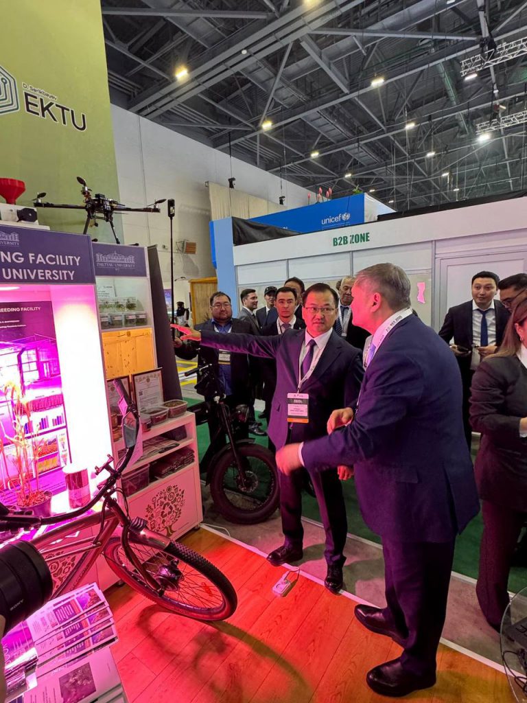 Жетысуский университет имени И. Жансугурова также принял активное участие в саммите, презентовав проекты в области зелёных технологий и устойчивого развития. В ходе выставки, направленной на обеспечение экологической устойчивости, ректор университета Ермек Бурибаев представил научные разработки и инновационные продукты учёных вуза по двум ключевым направлениям: