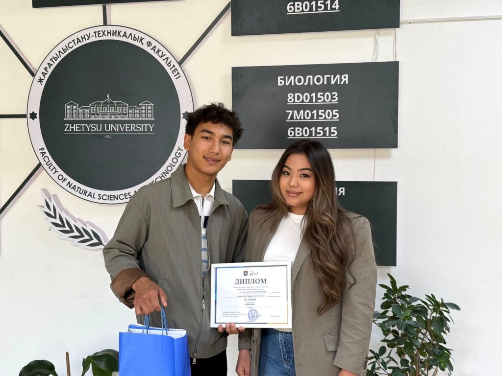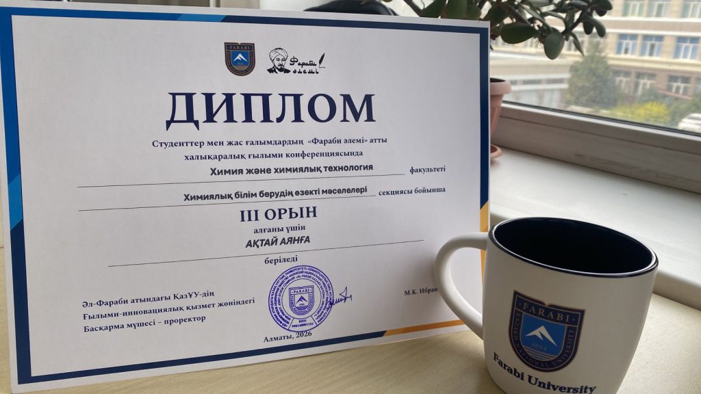 В рамках Международной научной конференции студентов и молодых учёных, прошедшей в Казахском национальном университете имени аль-Фараби, студент 2 курса специальности «Химия» кафедры естественных дисциплин естественно-технического факультета продемонстрировал высокий результат.
