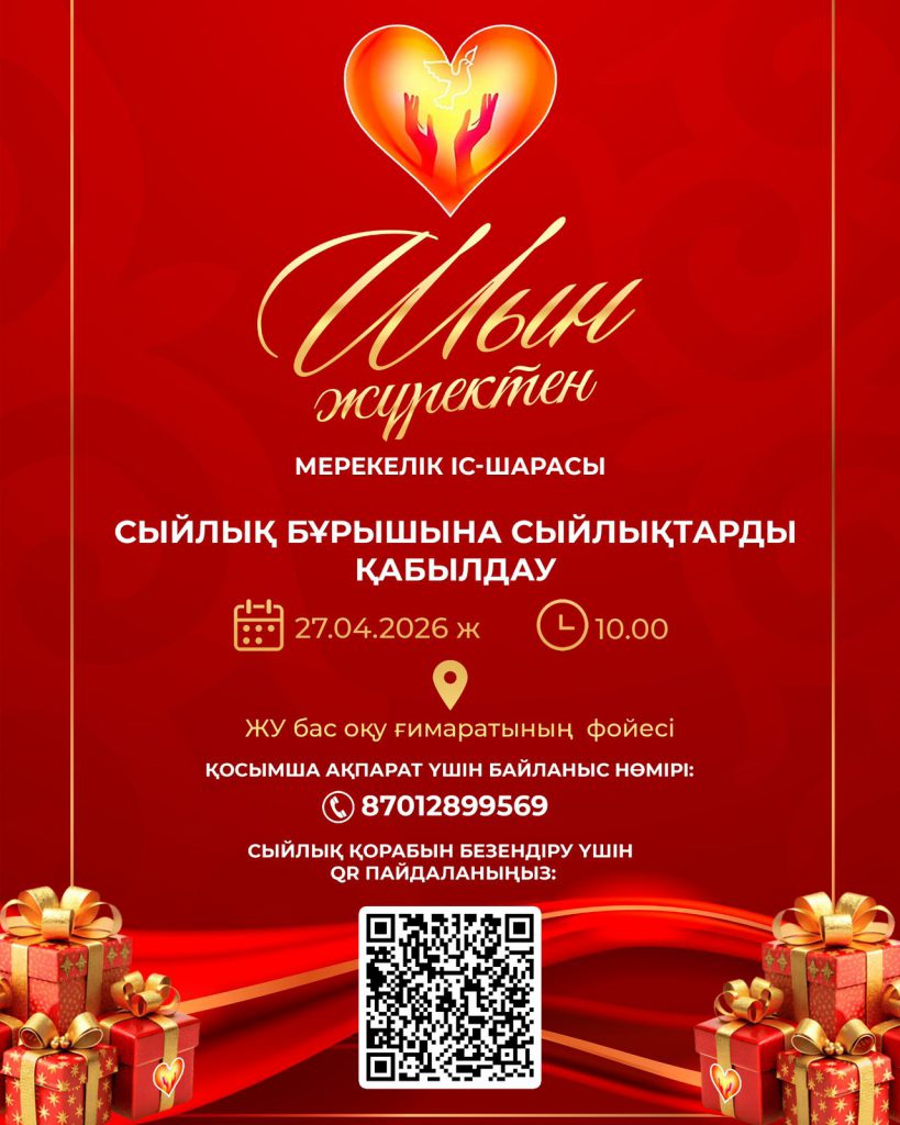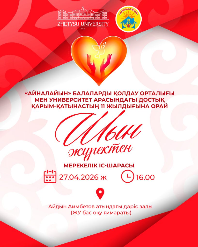 On April 27, 2026, at Zhetysu University named after Ilyas Zhansugurov, a charity event titled «Шын жүректен…» will be held within the framework of the International Year of Volunteers, dedicated to the 11th anniversary of the friendly partnership between the Children Support Center «Aynalain» and the University.