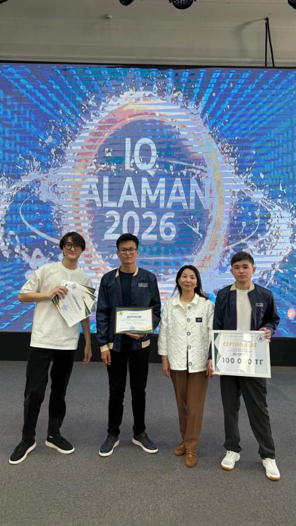 Сондай-ақ, Қазақ ұлттық қыздар педагогикалық университеті базасында ұйымдастырылған «IQ АЛАМАН – 2026» XII республикалық байқауында Физика-математика факультетінің студенттері жүлделі ІІІ орынды иеленді. «Justice» командасы құрамында өнер көрсеткен Әбдіғалым Мәди, Ойрат Қайсар және Шаяхмет Тілек жасанды интеллект бағытындағы жобаларын сәтті қорғап, жоғары деңгейде танылды.