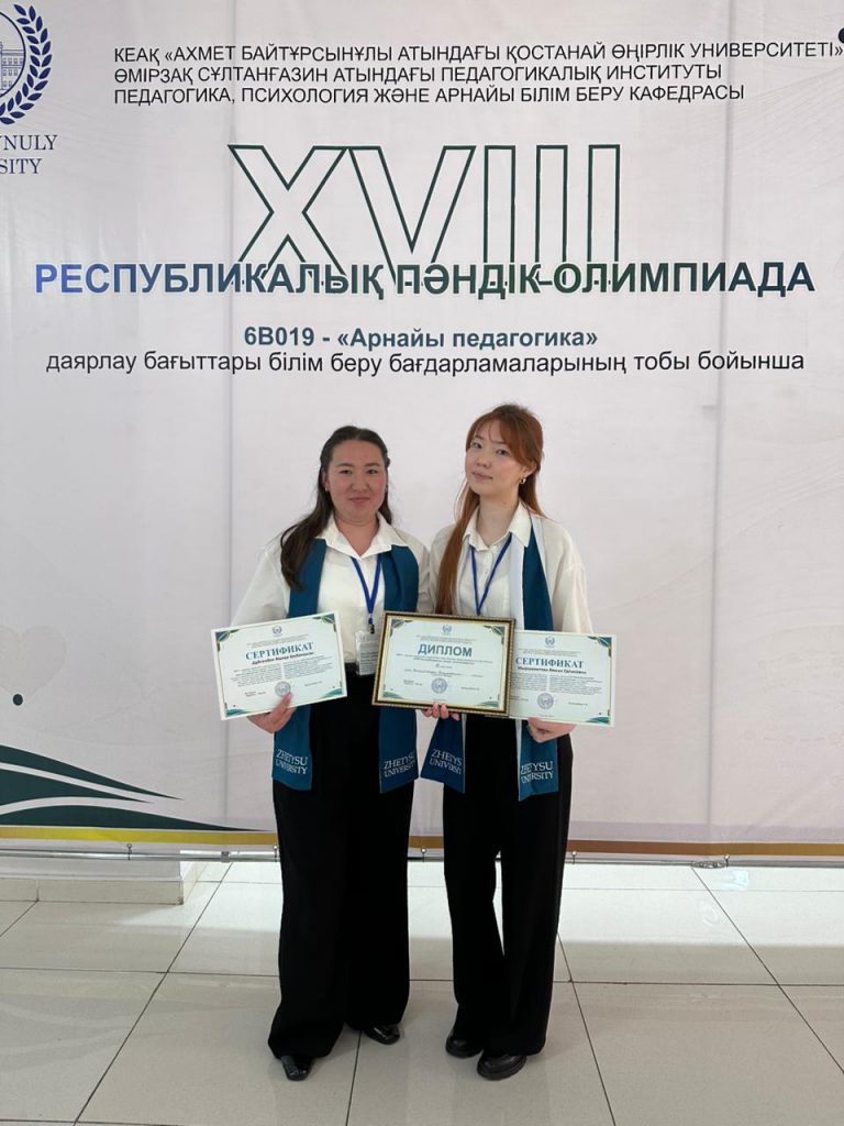 Бұдан бөлек, Қостанай қаласындағы Ахмет Байтұрсынұлы атындағы Қостанай өңірлік университеті базасында өткен «Арнайы педагогика» бағыты бойынша XVIII республикалық студенттік пәндік олимпиадада Педагогика және психология факультетінің 3 курс студенттері де табысты өнер көрсетті. Атап айтқанда, Мырзахметова Аяжан мен Дүйсенбек Жанар ІІ орынды иеленді.