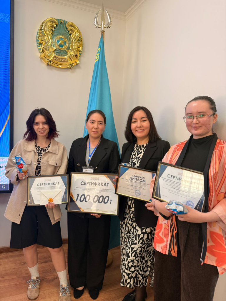 2 место и сертификат на сумму 100 000 тенге получила Есимбек Р.С. (научный руководитель — PhD Абайдельданова М.К.);