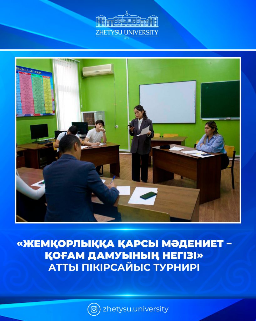 2026 жылғы 17 наурыз күні І. Жансүгіров атындағы Жетісу университетінде «Жемқорлыққа қарсы мәдениет – қоғам дамуының негізі» атты пікірсайыс турнирі ұйымдастырылды. Іс-шараның мақсаты – жастар арасында сыбайлас жемқорлыққа қарсы көзқарасты қалыптастыру, құқықтық мәдениетті арттыру және адалдық қағидаттарын кеңінен насихаттау. Пікірсайыс барысында қатысушылар қоғамдағы өзекті мәселелерді талқылап, сыни ойлау, дәлел келтіру және пікір қорғау дағдыларын жоғары …