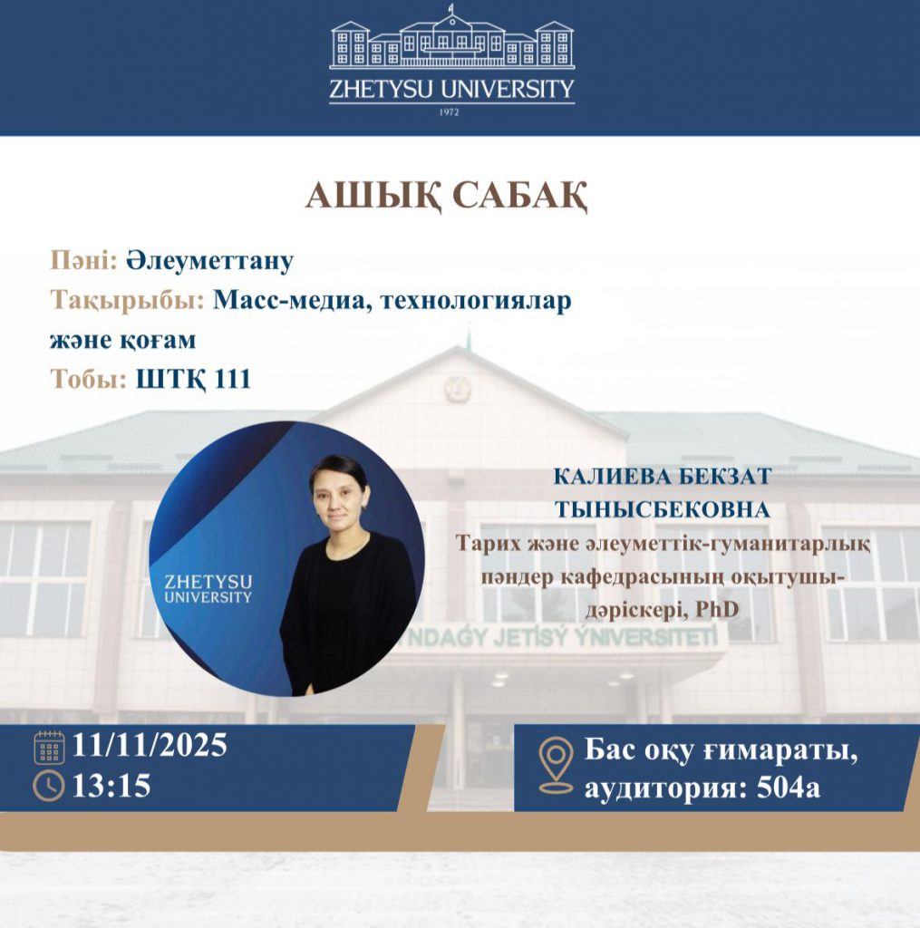 5 ноября 2025 года в рамках Недели истории, проходившей в Жетысуском университете имени И. Жансугурова, состоялось познавательное мероприятие под названием «Соотнесение высказываний казахских интеллигентов». Инициаторами и организаторами выступили профессорско-преподавательский состав кафедры истории и социально-гуманитарных дисциплин совместно со студентами образовательной программы «История». Цель мероприятия заключалась в популяризации жизни и творчества выдающихся представителей казахской интеллигенции, а также …
