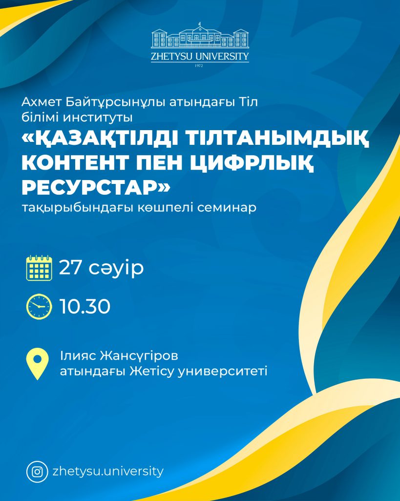 В Жетысуском университете имени И. Жансугурова по инициативе научно-практического центра «Илиястану» состоялся традиционный республиканский фестиваль студентов и молодежи «Ілияс Әлемі». Фестиваль открылся церемонией возложения цветов к памятнику поэта. В рамках мероприятия были организованы поэтический конкурс «Соғайын сөзімнен бір сұлу сарай» и конкурс выразительного чтения «Өлең деген — әр сөздің ұнасымы». В фестивале приняли участие студенты …