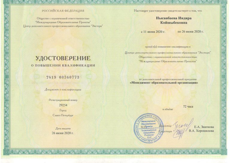 Senior manager of the educational and methodological department of higher and postgraduate education